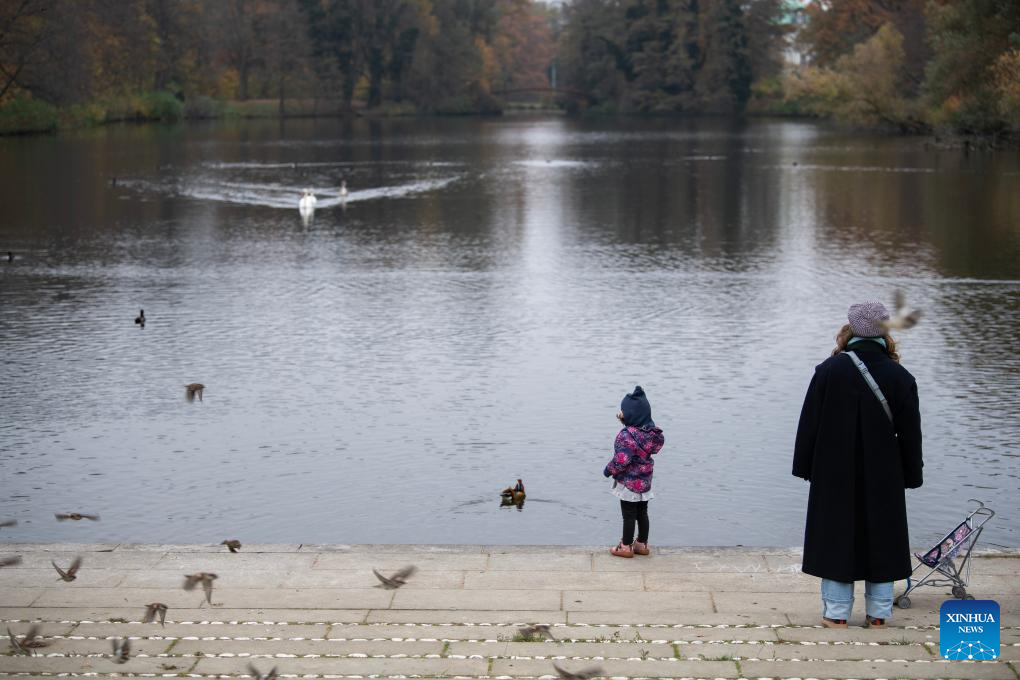 People walk at Viktoria Park in Berlin, Germany, Nov. 7, 2025. (Xinhua/Zhang Haofu)
