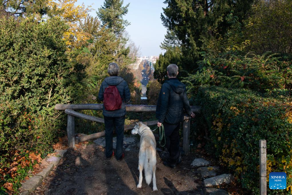People enjoy the scenery at Viktoria Park in Berlin, Germany, Nov. 7, 2025. (Xinhua/Zhang Haofu)
