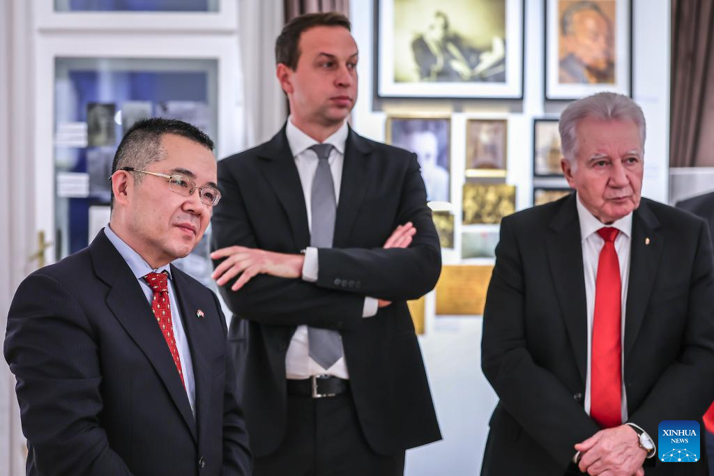 Jointly organized by the China Cultural Center in Budapest and the Hungarian-Chinese Friendship Association, the exhibition showcases the architectural achievements of four Hungarian architects, including Laszlo Hudec, Karoly Gonda, Bela Matrai, and Rudolf Somjen. Through photographs, films, archival documents, models, and installations, it illustrates how their modernist designs became integrated into the evolution of Shanghai's urban landscape. (Photo by David Balogh/Xinhua)