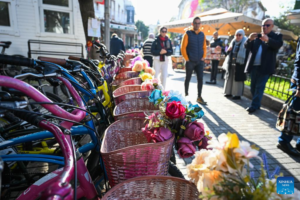 Bicycles for rent are seen on Buyukada Island in Istanbul, Türkiye, on Dec. 4, 2025. Buyukada Island, located in the Sea of Marmara and well known for its scenic beauty, is a popular getaway destination for locals and visitors. (Xinhua/Liu Lei)