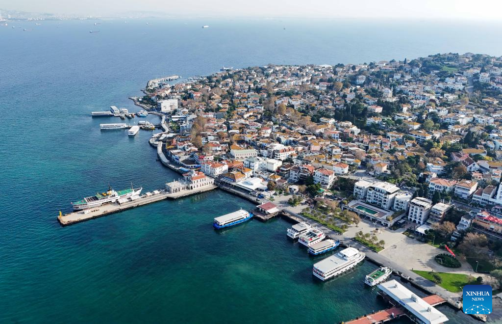 An aerial drone photo taken on Dec. 4, 2025 shows a view of Buyukada Island in Istanbul, Türkiye. Buyukada Island, located in the Sea of Marmara and well known for its scenic beauty, is a popular getaway destination for locals and visitors. (Xinhua/Liu Lei)
