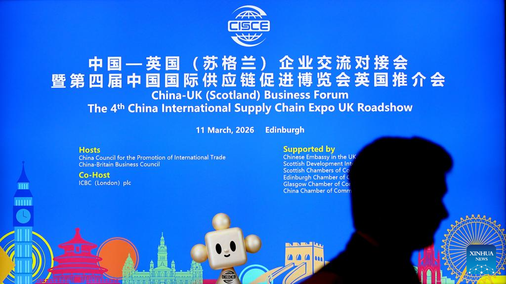 EDINBURGH, Britain, March 12 (Xinhua) -- A China-UK (Scotland) business forum and the UK roadshow for the 4th China International Supply Chain Expo (CISCE) was held in Edinburgh on Wednesday evening, bringing together more than 100 representatives from government, industry and academia to explore opportunities for closer cooperation.