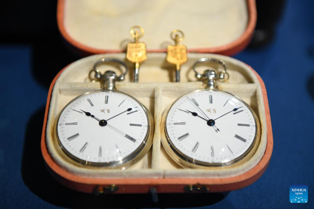 A pair of pocket watches specially made for export to China are pictured at the International Museum of Horology (MIH) in La Chaux-de-Fonds, Switzerland, April 12, 2026. The MIH houses the collection devoted to the history of time measurement spanning from the 16th century to the present.