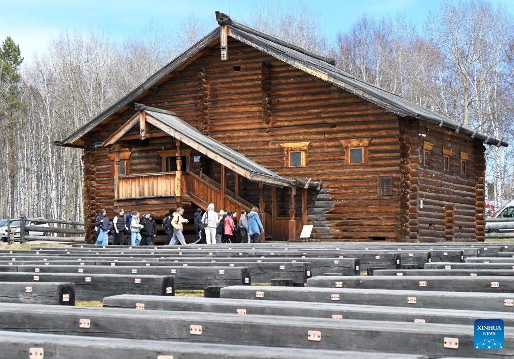 Students visit the Taltsy Architectural and Ethnographic Museum in Irkutsk, Russia, on April 28, 2026. (Xinhua/Hao Jianwei)