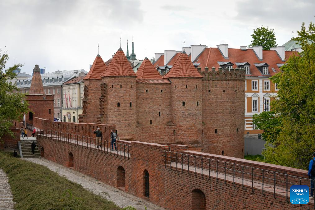 This photo taken on April 28, 2026 shows the barbican of the Old Town in Warsaw, Poland. (Photo by Jaap Arriens/Xinhua)
