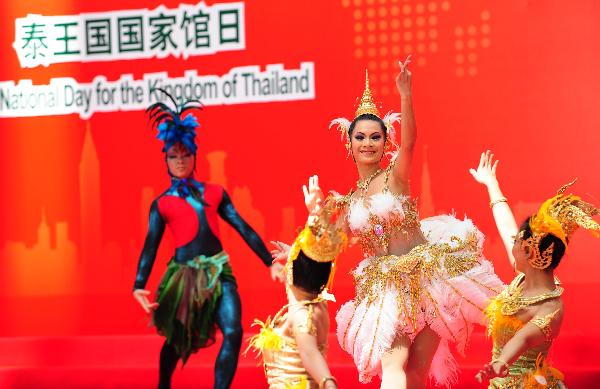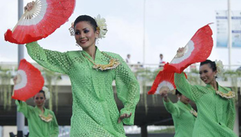 Malaysian actors perform traditonal dance in Shanghai World Expo Park