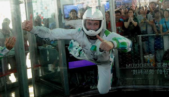 Acrobats perform in wind tunnel in Latvia Pavilion in Shanghai World Expo Park