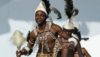 Kenyan dancers display Kenyan traditional celebration scenes in Shanghai World Expo Park