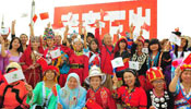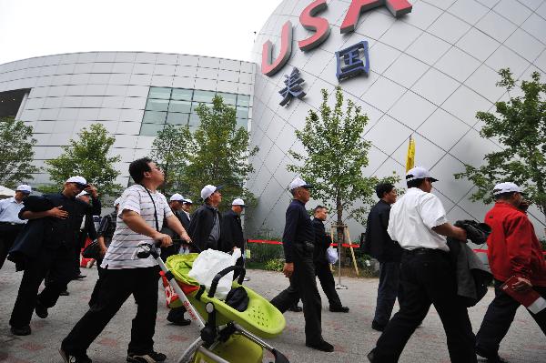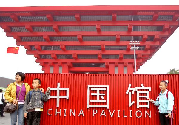 People cheer for China's National Pavilion Day