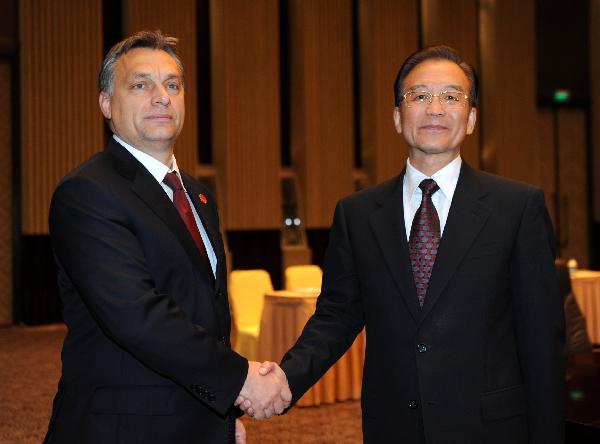 Premier Wen meets with Hungarian PM