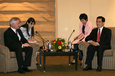 Chinese President Hu Jintao, speaking at the second-day session of APEC's 15th Economic Leaders Meeting held in Sydney on Sunday, expounded China's stance on WTO's Doha Round talks and regional economic integration.