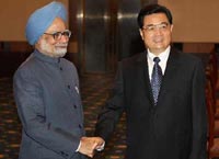 Chinese President Hu Jintao meets with Indian PM Singh