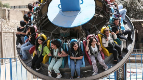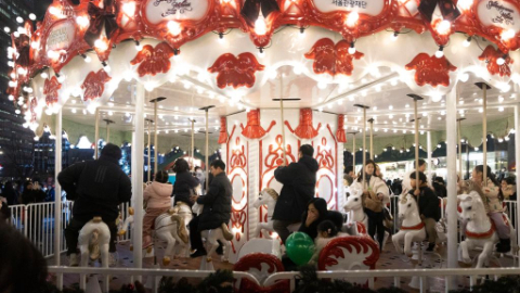 People enjoy Christmas atmosphere in Beirut, Lebanon