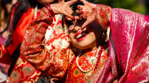 Girls participate in puberty ceremony in Lalitpur, Nepal