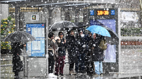 Snow falls in Madrid, Spain