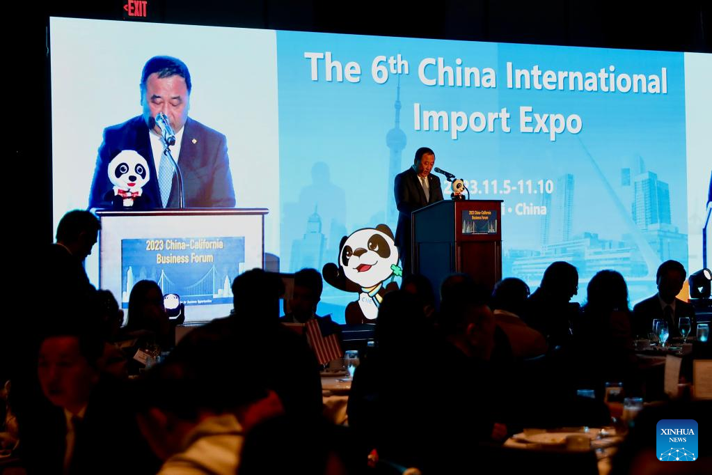 Sun Chenghai, deputy director of the China International Import Expo (CIIE) Bureau, speaks during a roadshow for the 6th CIIE in Los Angeles, the United States, May 22, 2023. Over 400 attendees from local governments, chambers of commerce and enterprises took part in the roadshow here on Monday. (Xinhua)