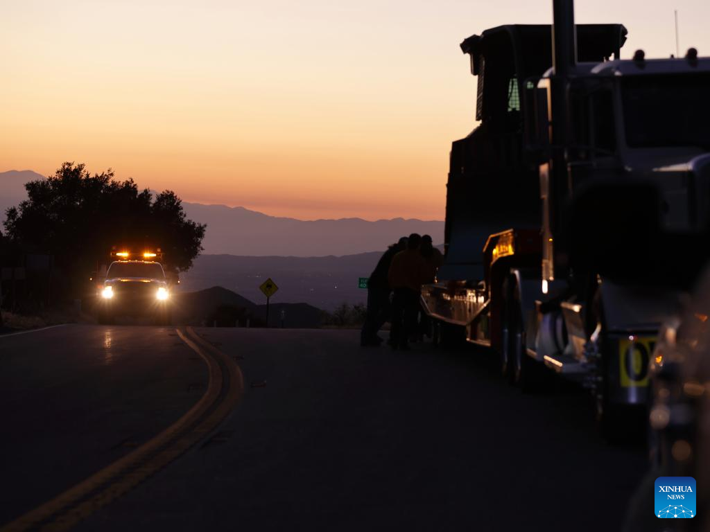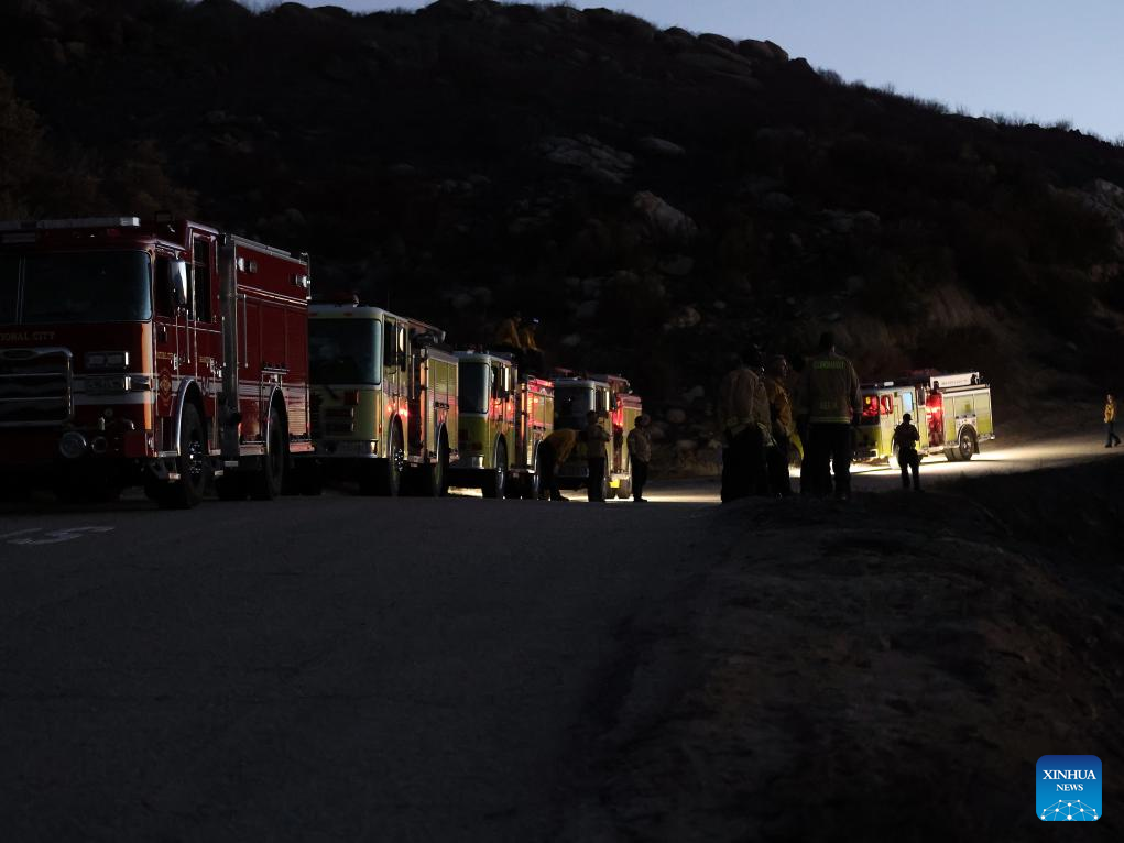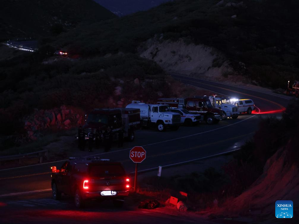 Firefighters keep inspecting the wildfire near Banning City, Riverside County of California, the United States, on June 30, 2025. A rapidly-expanding brush fire in Southern California has scorched more than 2,400 acres and prompted evacuation orders, local authorities said Monday.