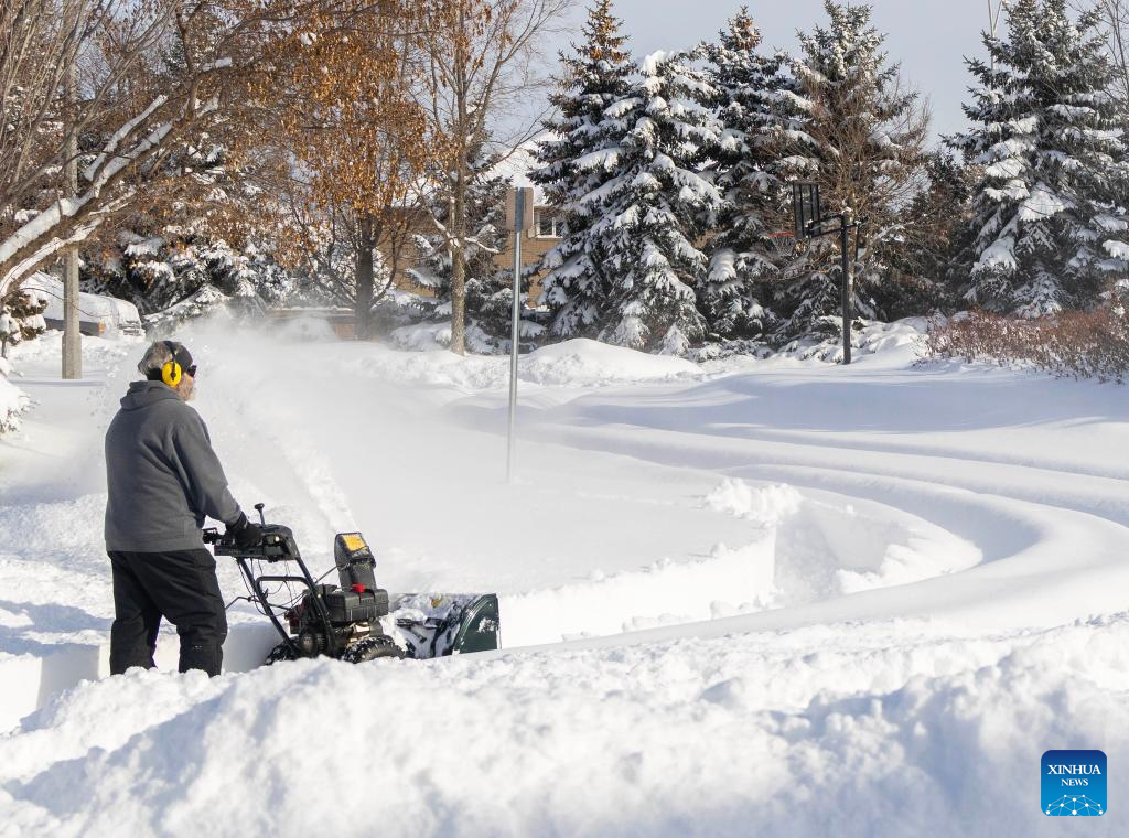 A man clears snow in Oakville, the Greater Toronto Area, Canada, Jan. 26, 2026. (Photo by Zou Zheng/Xinhua)