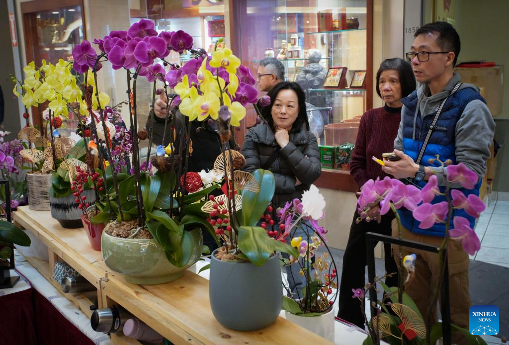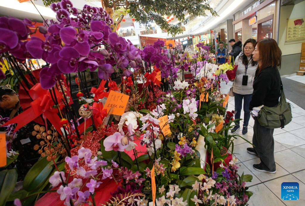 Customers select flowers at a Chinese New Year flower and gift fair at Aberdeen Center in Richmond, British Columbia, Canada, on Feb. 12, 2026. (Photo by Liang Sen/Xinhua)