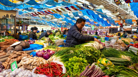View of Daguan Zhuanxin farmers' market in Kunming