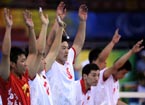 Swedish players raise "Thank you, China" banner