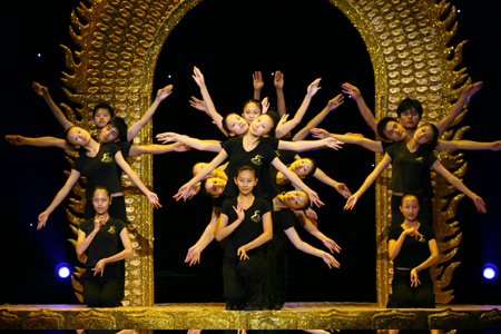 Disabled troupers perform "The Thousand Hand Goddess of Mercy"