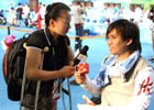 Chinese wheelchair fencer Jin Jing acts as interviewer