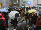 Shanghai citizens queue in rain for "Avatar"