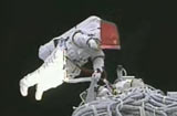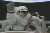 Chinese taikonaut tries bite on his food in Shenzhou-7