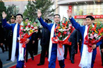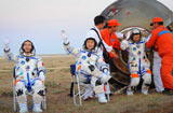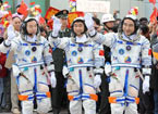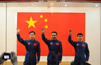 Taikonauts aboard China's spacecraft Shenzhou-7 debut