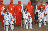 Crew of Shenzhou-7 manned space mission meet press
