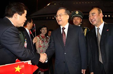Chinese Premier Wen Jiabao left on Monday afternoon, after his working visit to Laos and participation in the 3rd Summit of the Greater Mekong Subregion (GMS) countries.