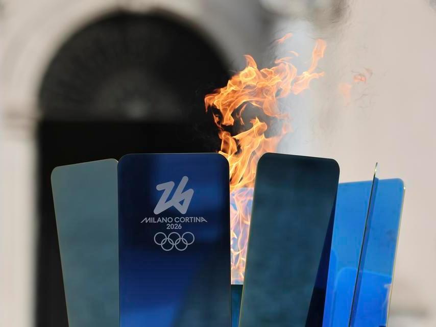 Olympic torch relay celebration cauldron for Milan-Cortina 2026 lit in Italy